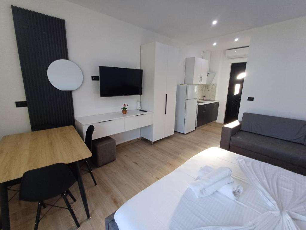 Featuring a private entrance, this air-conditioned villa is comprised of 1 living room, 1 separate bedroom and 1 bathroom with a shower and a hairdryer. The well-fitted kitchen features a stovetop, a refrigerator and an oven. The villa offers a flat-screen TV, soundproof walls, a minibar, a seating area as well as garden views. The unit offers 2 beds.